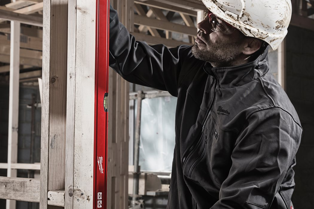 Specjalne nakładki antypoślizgowe, które zapobiegają ślizganiu się poziomicy na ścianie