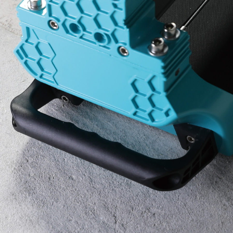 By ułatwić transport, przecinarka została wyposażona w wygodny uchwyt oraz kółka transportowe, które pozwalają na szybkie i proste przemieszczanie urządzenia w miejscu pracy.
