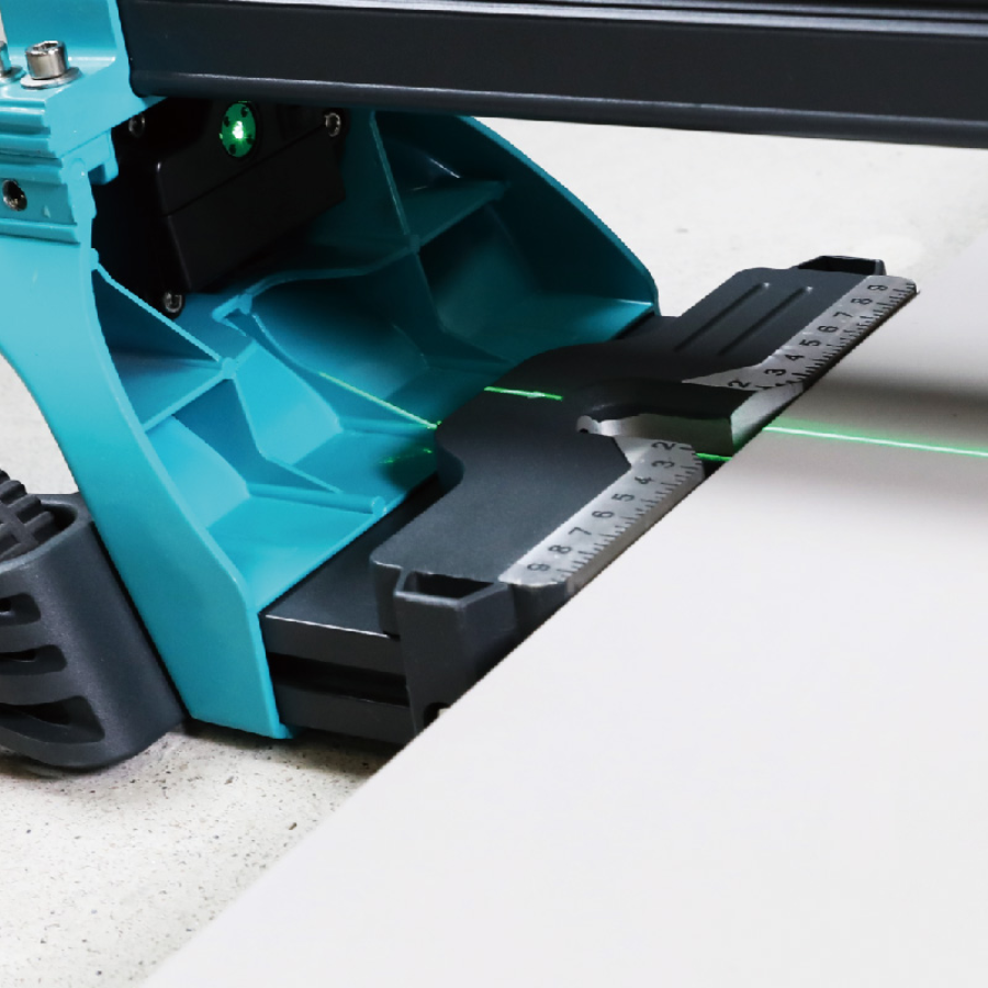 Dzięki precyzyjnej skali oraz sztywnej konstrukcji prowadnicy z wózkiem do cięcia, gwarantuje niezmiennie wysoką precyzję i stabilność w trakcie pracy. Wyposażona w innowacyjny zielony laser, przecinarka znacząco upraszcza proces znakowania i cięcia. Wózek porusza się bardzo łatwo dzięki łożyskom kulkowym, zapewniającym płynną i precyzyjną jazdę.