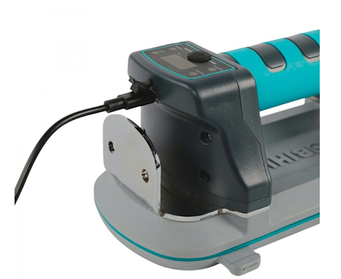 Dzięki automatycznemu systemowi uzupełniania powietrza, przy ciężarze poniżej 90 kg, urządzenie samo reguluje ciśnienie, zapewniając stabilność i bezpieczeństwo pracy. Wbudowany wyświetlacz cyfrowy umożliwia łatwy dostęp do informacji o stanie urządzenia, co pozwala na precyzyjną kontrolę podczas montażu. Podwójna gumowa podkładka gwarantuje doskonałą szczelność, co jest kluczowe podczas montażu zarówno gładkich, jak i teksturowanych powierzchni.