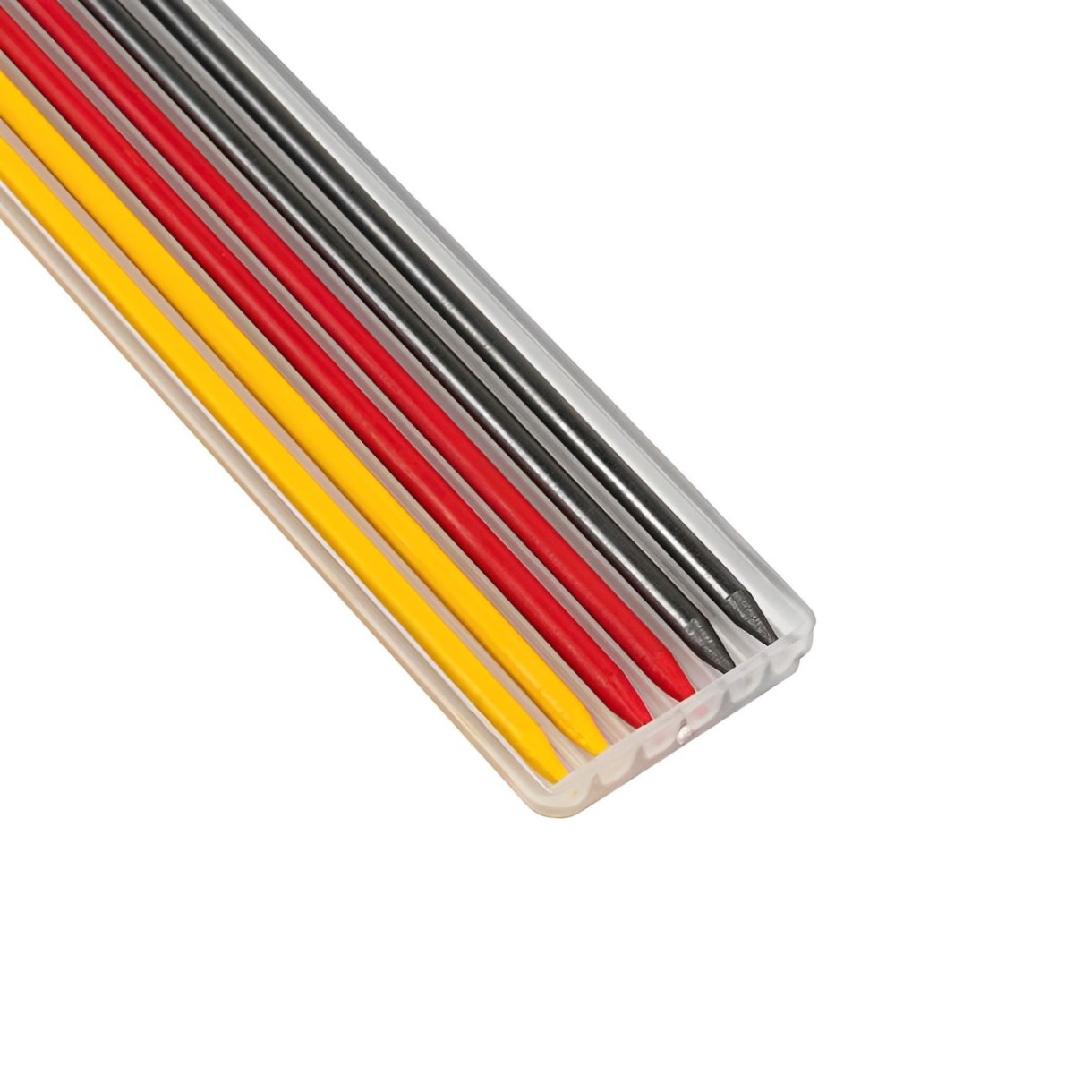 Zestaw wkładów do ołówków jest dostępny w trzech kolorach: czerwonym, grafitowym i żółtym. Nadaje się do znakowania praktycznie każdego materiału – metalu, plastiku, drewna, szkła, kamienia i płytek. Te uniwersalne wkłady piszą na każdej powierzchni – brudnej, zakurzonej, mokrej lub tłustej. Pasują również do ołówka budowlanego Pica-Dry.