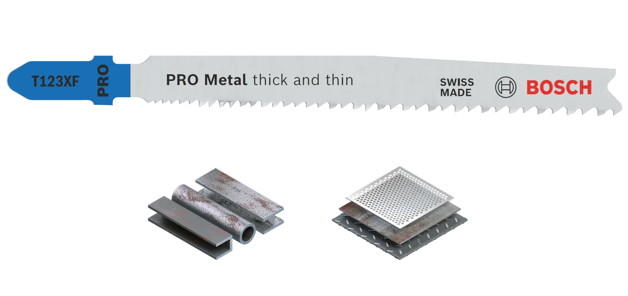 - T 123 XF Progressor for Metal jest odporny na złamanie i umożliwia szybkie proste cięcie cienkiego i grubego metalu.