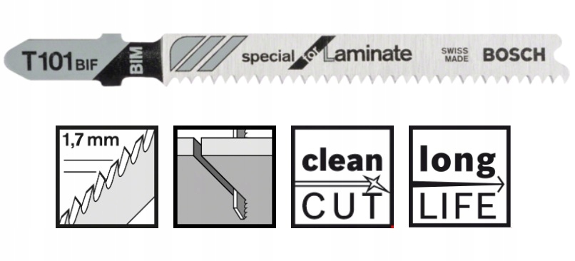 Brzeszczot T 101 BIF Special for Laminate do wyrzynarki umożliwia czyste proste cięcia w drewnie
