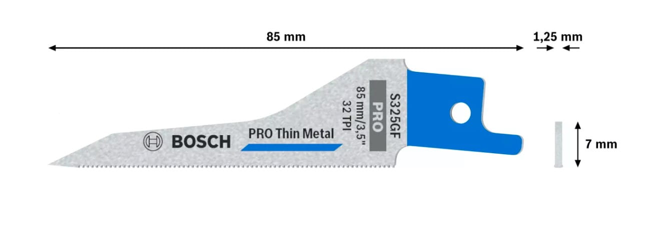 Brzeszczot PRO Thin Metal S325GF ma zaawansowaną konstrukcję bimetalową z hartowanymi zębami HSS, które zachowują długą żywotność także w pracy z blachami stalowymi.