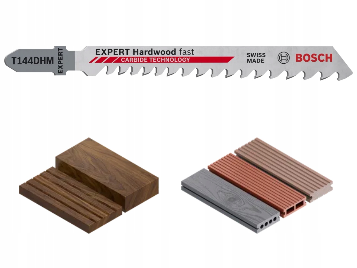 Niestety, twarde lub abrazyjne materiały, takie jak kompozyty drewniano-plastikowe, mają tendencję do niszczenia brzeszczotów wyrzynarki — ale to już dobiegło końca: EXPERT Hardwood fast T144DHM ma zęby z węglika spiekanego, co zapewnia znacznie lepsza trwałość.