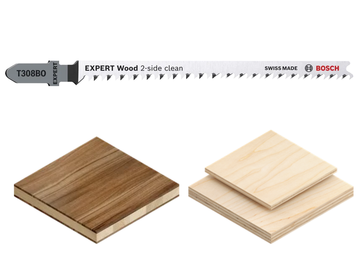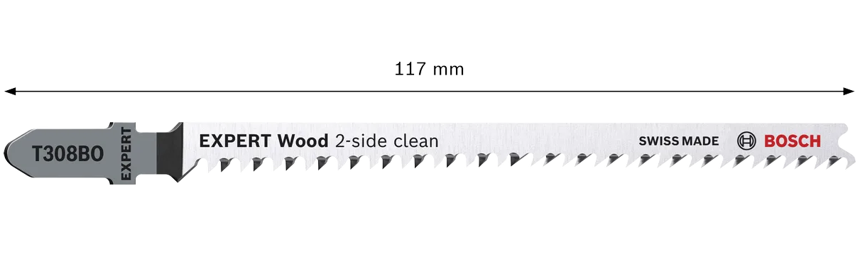 Można też użyć EXPERT 'Wood 2-side clean', który oferuje idealne cięcie bez wyrywania po obu stronach dzięki podwójnym rzędom zębów.