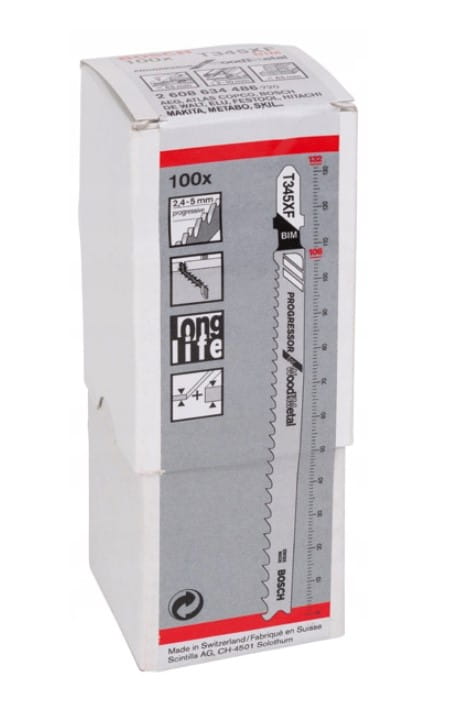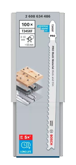 Brzeszczot T 345 XF Progressor for Wood and Metal umożliwia szybkie proste cięcie cienkiego i grubego drewna z metalem