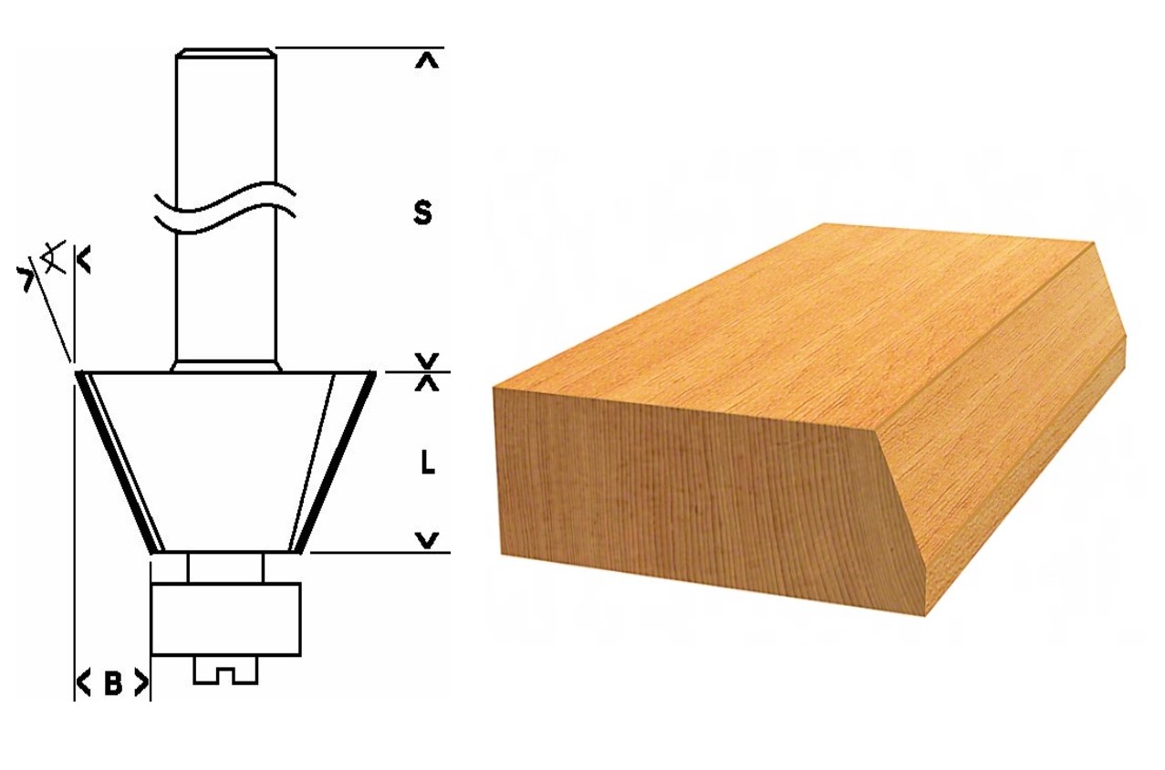 Frez kątowy zewnętrzny Standard for Wood, kąt 25 stopni zapewnia wysoką wydajność jednolitego frezowania
