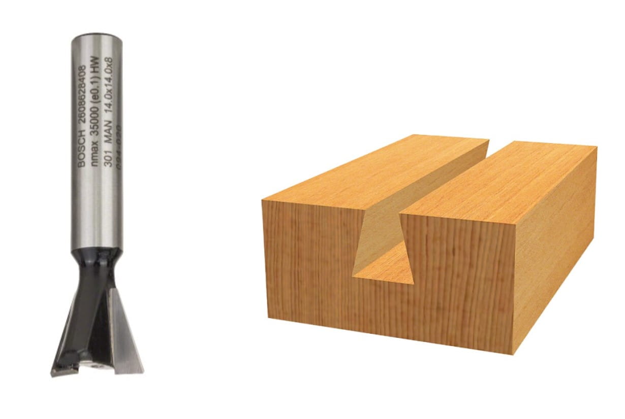BOSCH FREZ DO DREWNA DO WCZEPÓW DO POŁĄCZEŃ NA JASKÓŁCZY OGON średnica 14mm uchwyt 8mm