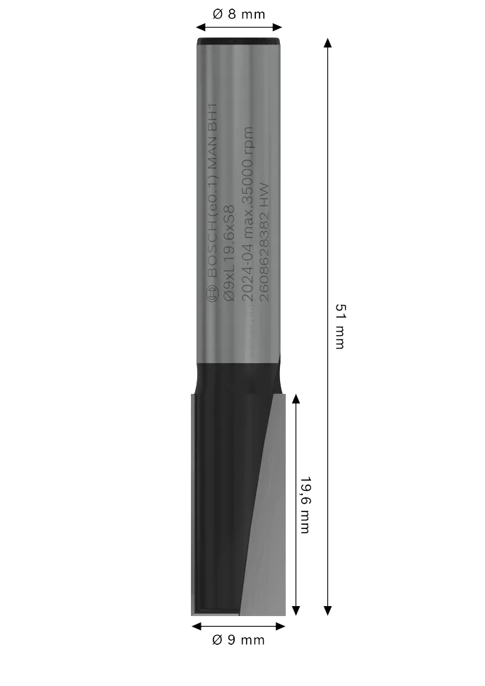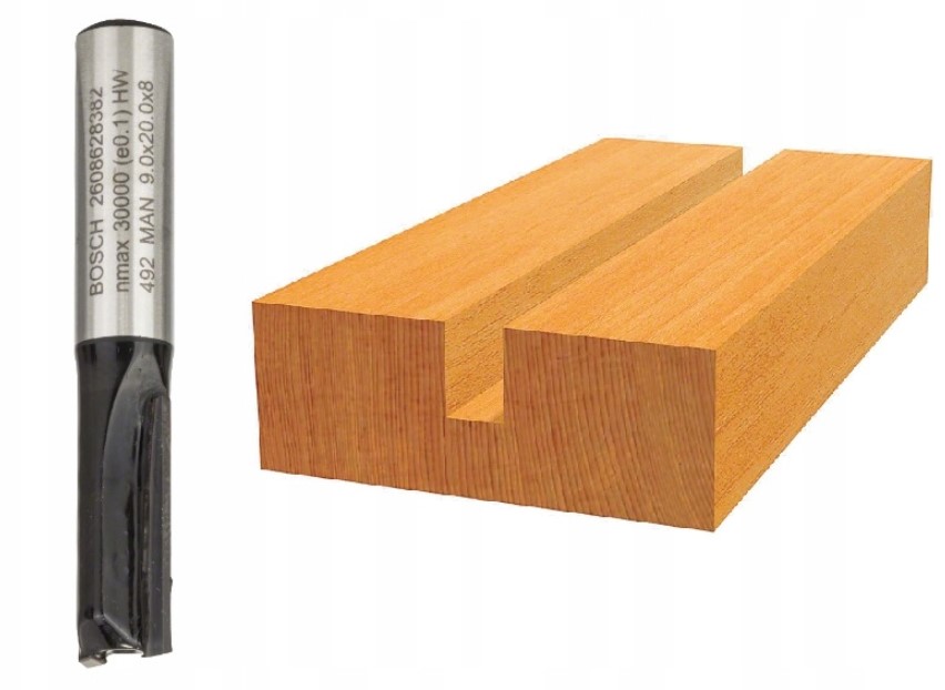 BOSCH FREZ DO DREWNA DO WPUSTÓW DWUOSTRZOWY średnica 9mm, uchwyt 8mm