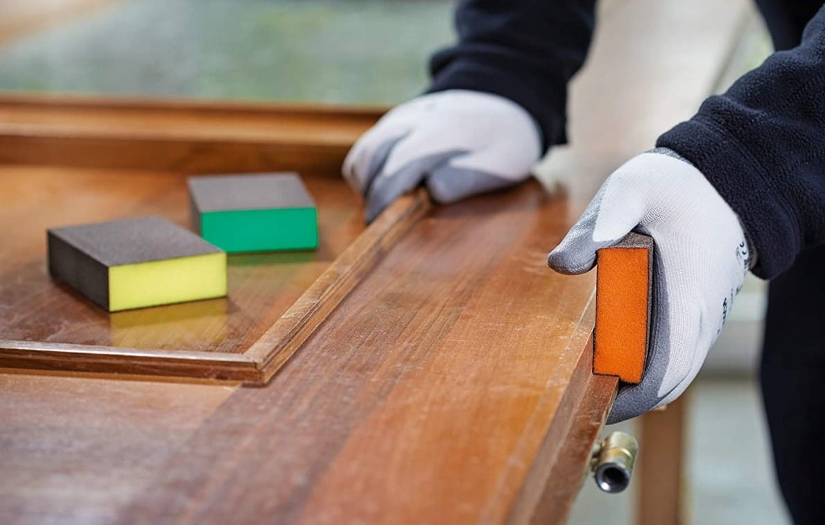 - Gąbka szlifierska drobna do szlifowania elementów z drewna i metalu (nasyp korundowy)