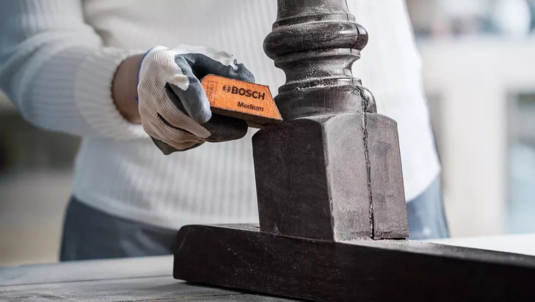 Czasami nie da się zastąpić ręcznego szlifowania. Problem polegał na tym, że konwencjonalne arkusze ścierne szybko się zużywały, zapychały się lub pękały podczas szlifowania krzywizn i krawędzi. Starym rozwiązaniem było kupowanie dużej liczby arkuszy ściernych, co prowadziło do dużego zużycia i marnotrawstwa. Nowym rozwiązaniem są gąbki szlifierskie wykorzystujące Bosch Surface Structure.