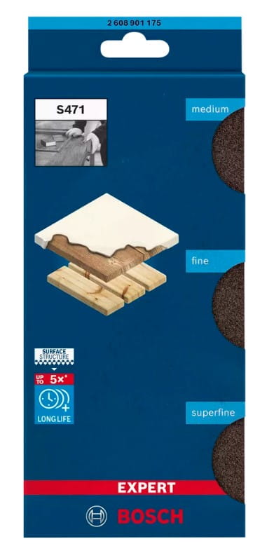 Czasami nie da się zastąpić ręcznego szlifowania. Problem polegał na tym, że konwencjonalne arkusze ścierne szybko się zużywały, zapychały się lub pękały podczas szlifowania krzywizn i krawędzi. Starym rozwiązaniem było kupowanie dużej liczby arkuszy ściernych, co prowadziło do dużego zużycia i marnotrawstwa. Nowym rozwiązaniem są gąbki szlifierskie wykorzystujące Bosch Surface Structure.