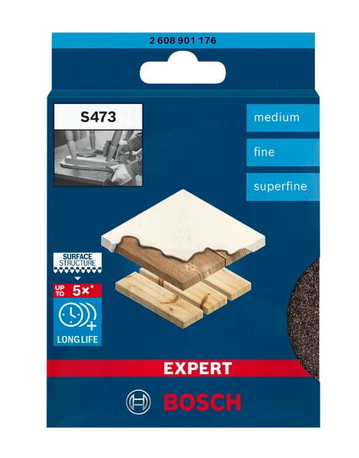 Czasami nie da się zastąpić ręcznego szlifowania. Problem polegał na tym, że konwencjonalne arkusze ścierne szybko się zużywały, zapychały się lub pękały podczas szlifowania krzywizn i krawędzi. Starym rozwiązaniem było kupowanie dużej liczby arkuszy ściernych, co prowadziło do dużego zużycia i marnotrawstwa. Nowym rozwiązaniem są gąbki szlifierskie wykorzystujące Bosch Surface Structure.