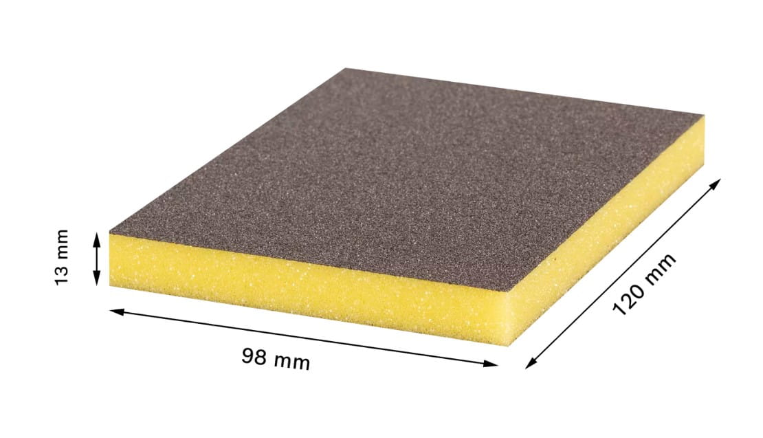 Gąbkę można wielokrotnie myć i ponownie używać. Gąbka ma mocne krawędzie do szlifowania krawędzi. Ponadto jest pokryta ze wszystkich czterech stron grysem ściernym odpornym na łamanie. Gąbka ścierna jest dostępna w 3 kolorach w celu odróżnienia wielkości grysu ściernego do różnych kroków szlifowania. Nie zawiera rozpuszczalnika.