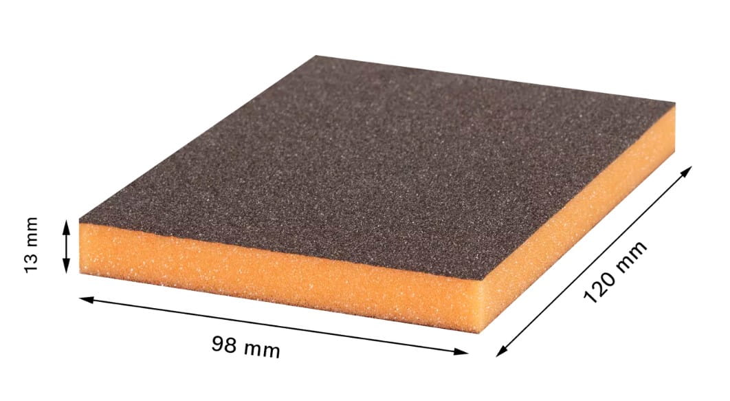 Gąbkę można wielokrotnie myć i ponownie używać. Gąbka ma mocne krawędzie do szlifowania krawędzi. Ponadto jest pokryta ze wszystkich czterech stron grysem ściernym odpornym na łamanie. Gąbka ścierna jest dostępna w 3 kolorach w celu odróżnienia wielkości grysu ściernego do różnych kroków szlifowania. Nie zawiera rozpuszczalnika.