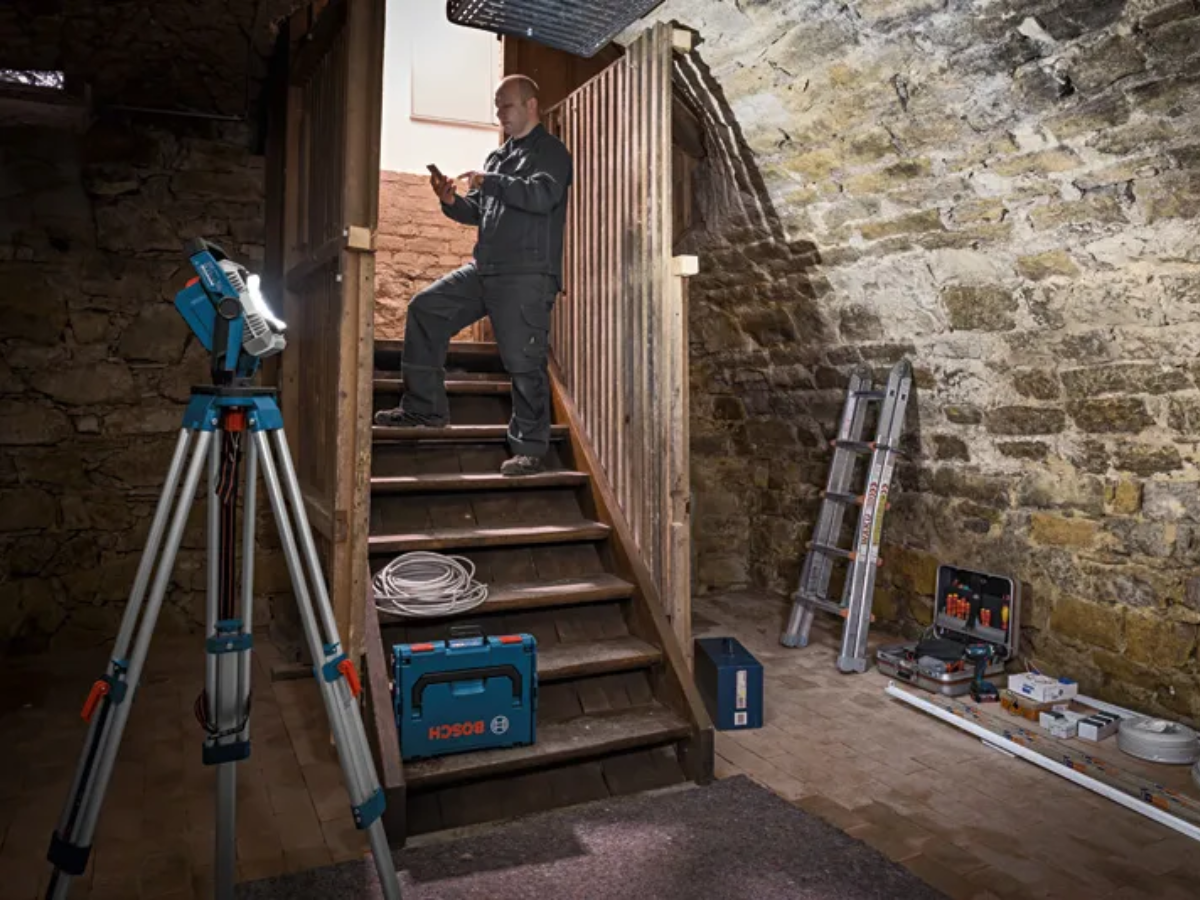 GLI 18V-2200 C Professional to wszechstronna i wytrzymała lampa robocza Bosch w klasie napięcia 18 V. Wydajna dioda LED zapewnia strumień świetlny do 2 200 lumenów, a tym samym lepsze oświetlenie. Urządzenie jest pyło- i bryzgoszczelne dzięki solidnej osłonie akumulatora (stopień ochrony IP 64). Wygodna obsługa za pomocą smartfona pozwala na szybką i łatwą regulację naświetlacza. Narzędzie posiada dwa ustawienia jasności, pięć ustawień kąta oraz gwint do statywu 5/8" pozwalający szybko dostosować się do każdej sytuacji podczas pracy. Lampa doskonale oświetla kompletny obszar pracy przez cały dzień. Produkt jest kompatybilny ze wszystkimi akumulatorami profesjonalnymi Bosch 18 V* (system profesjonalny Bosch 18 V). * Przy zastosowaniu akumulatora ProCORE18V 12.0Ah pokrywy akumulatora nie można całkowicie zamknąć. Model jest także kompatybilny z systemem akumulatorowym AMPShare dla wielu marek.