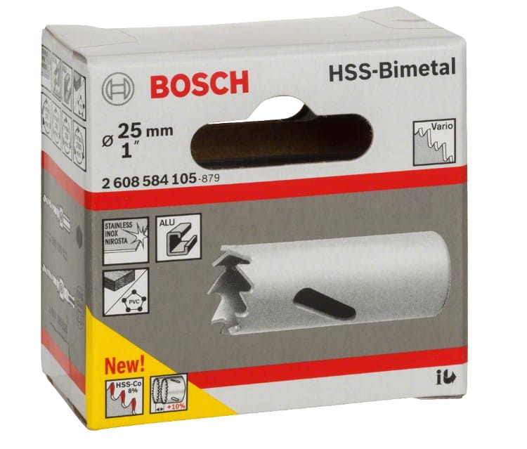 Dla maksymalnej wydajności i żywotności koronki zaleca się w czasie wiercenia w metalu stosowanie uniwersalnego oleju chłodząco-smarującego BOSCH 2607001409 oraz doboru odpowiednich prędkości obrotowej w zależności od rodzaju wierconego materiału.