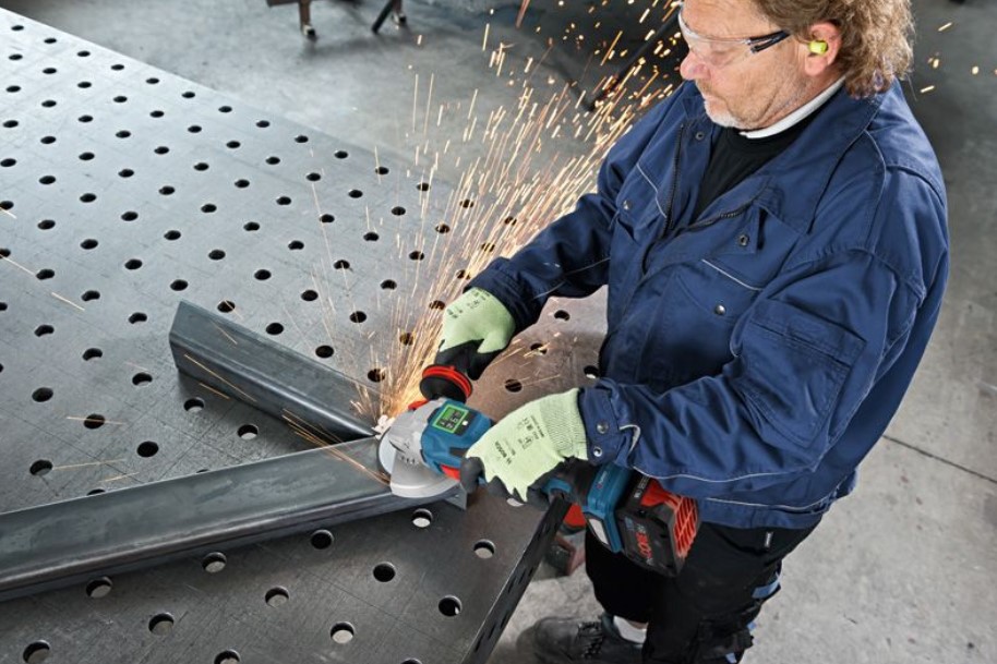 Idealne narzędzie do szlifowania metalu lub spawów, a także do cięcia metalu, betonu, cegły i płytek ceramicznych. W celu ograniczenia emisji pyłu w miejscu pracy należy używać modelu GWS 18V-15 SC Professional w połączeniu z systemami odsysania pyłu GDE 125 EA-T Professional i GDE 115/125 FC-T Professional. Kompatybilność z systemem profesjonalnym 18 V firmy Bosch oraz z systemem akumulatorowym AMPShare dla wielu marek. Aby zapewnić maksymalną wydajność, należy użyć akumulatora ProCORE18V o pojemności ≥ 5,5 Ah.