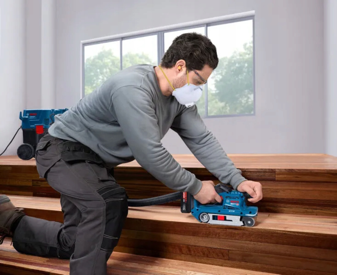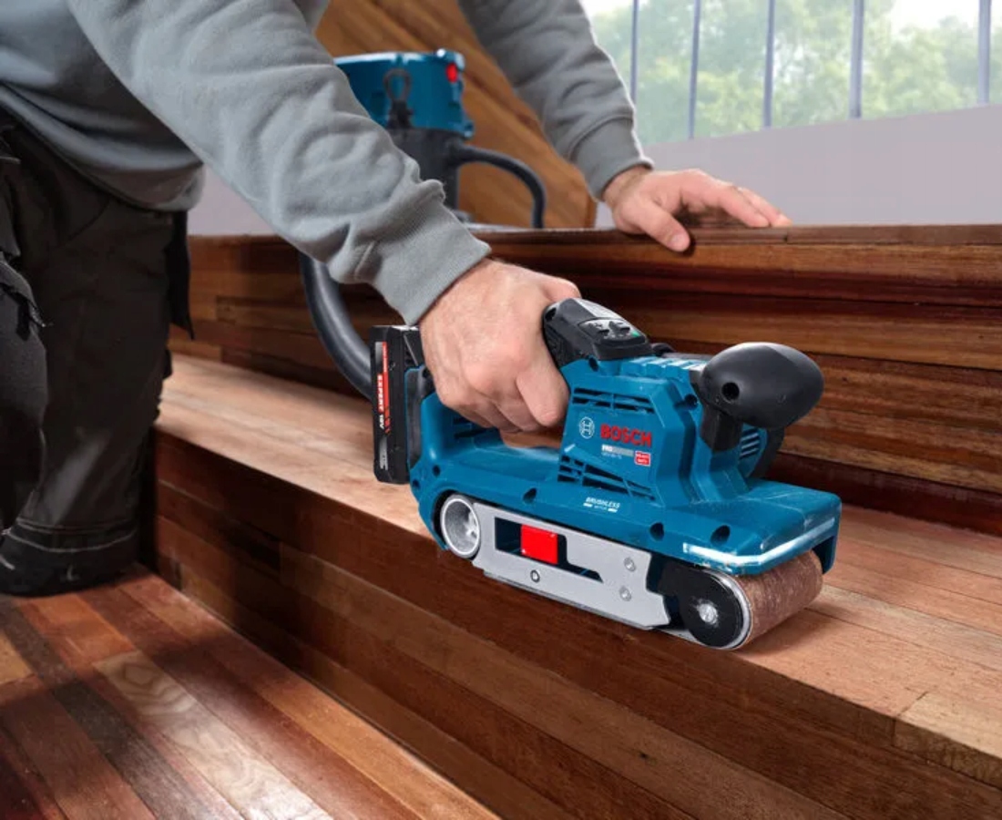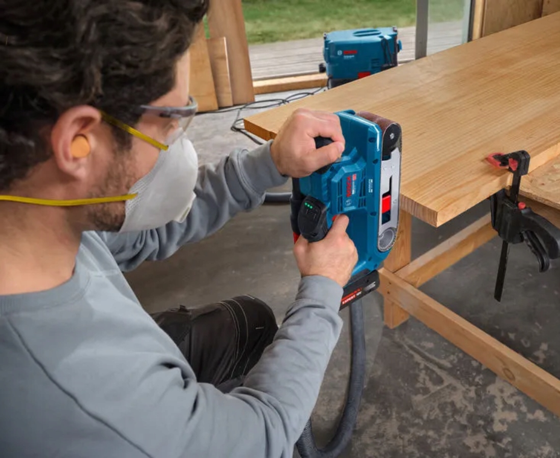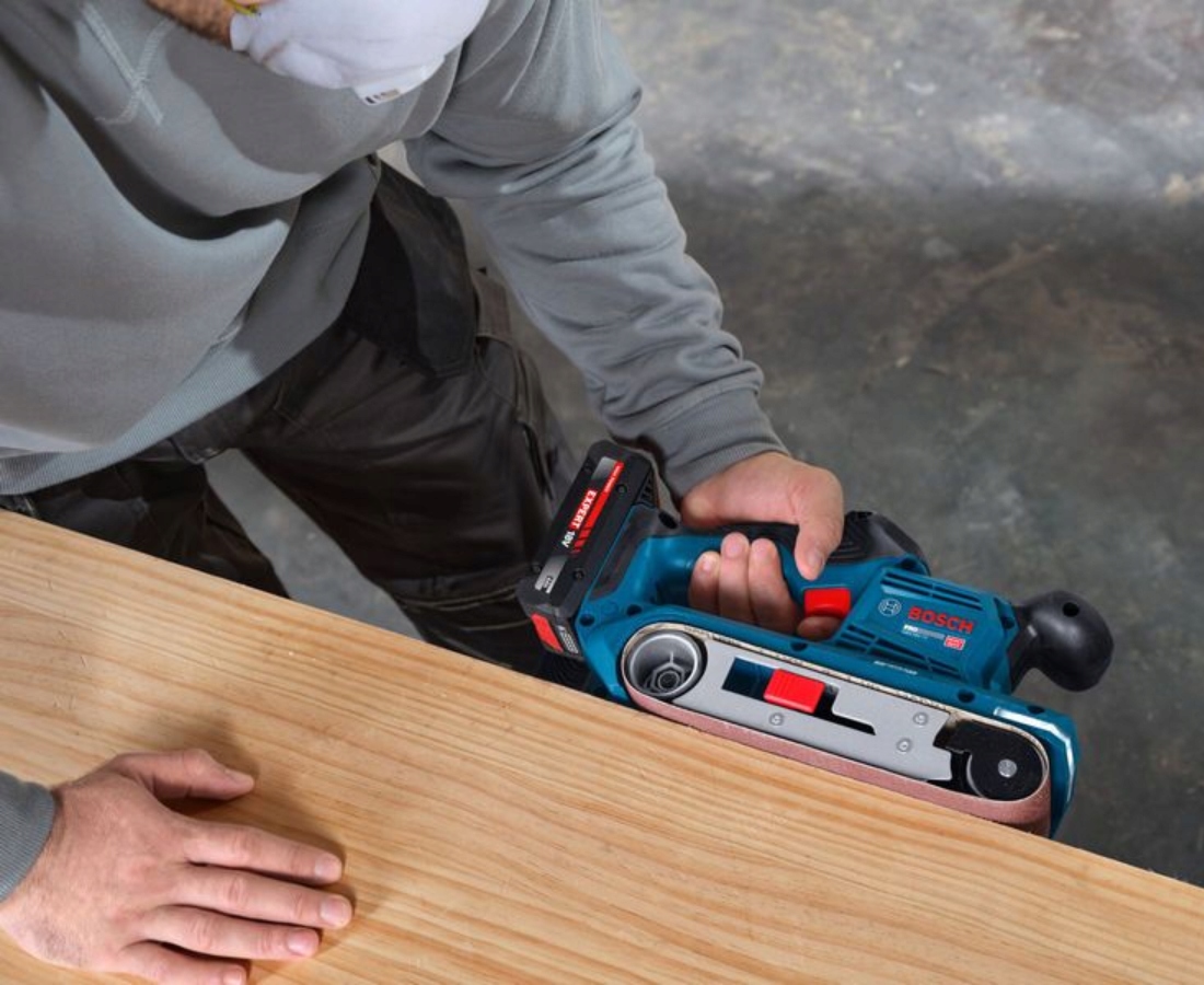 Kompaktowa szlifierka taśmowa waży zaledwie 2,7 kg. Wyposażenie obejmuje listwę świetlną LED oraz najnowszej generacji interfejs HMI umożliwiający ustawianie prędkości i sprawdzania stanu narzędzia. Narzędzie posiada wytrzymały worek na pył, który ułatwia usuwanie pyłu i jest kompatybilny z systemem Bosch Click & Clean.