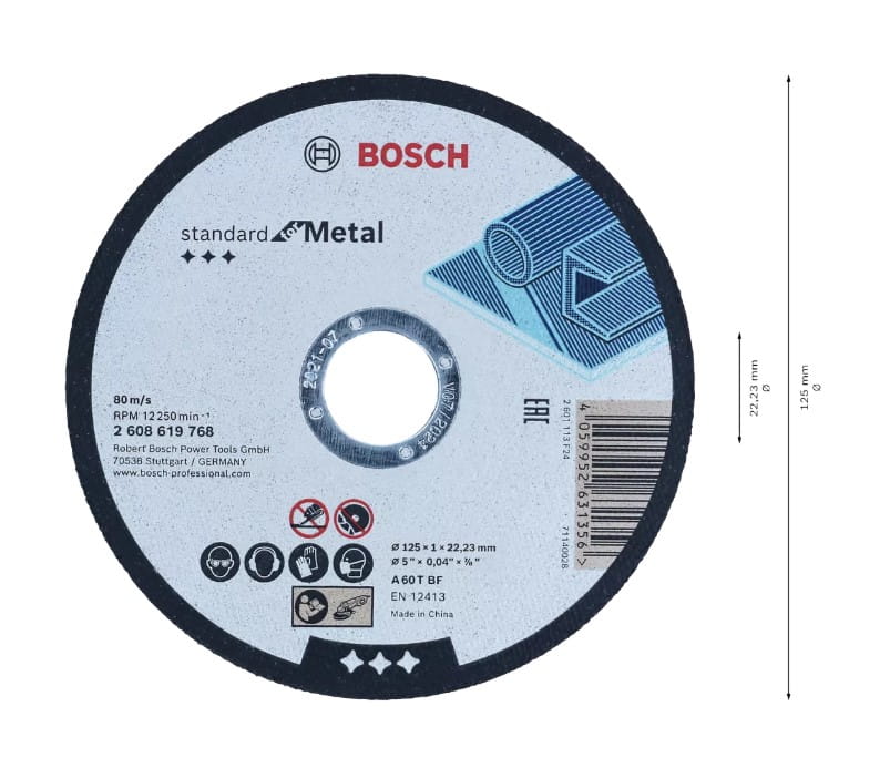 - Tarcze tnące marki Bosch spełniają najwyższe standardy bezpieczeństwa, takie jak norma EN 12413