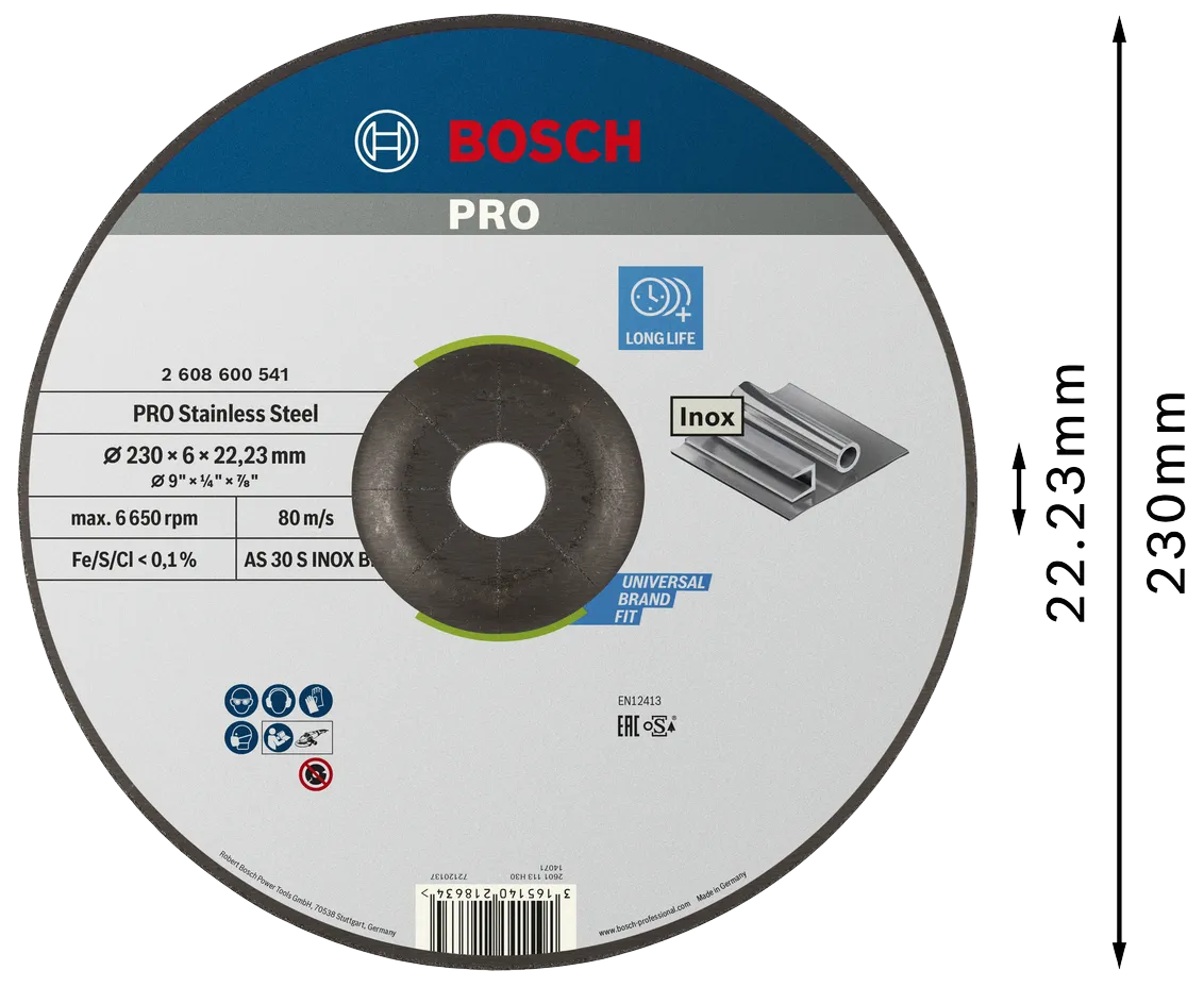 BOSCH TARCZA KORUNDOWA DO SZLIFOWANIA METALU Inox 230 x 6mm