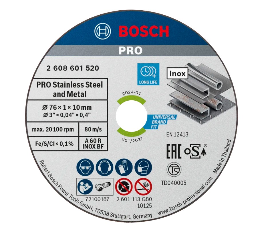 Tarcze tnące marki Bosch spełniają najwyższe standardy bezpieczeństwa, takie jak normy EN 12413, FEPA i oSa.