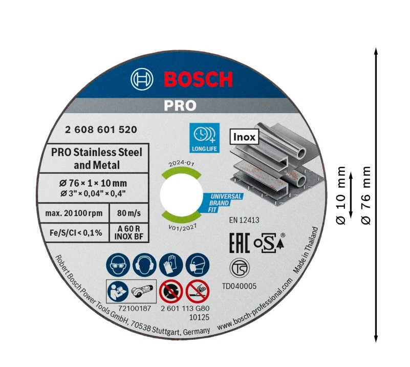 BOSCH TARCZA KORUNDOWA INOX GWS 12V-76 76mm 10x1mm