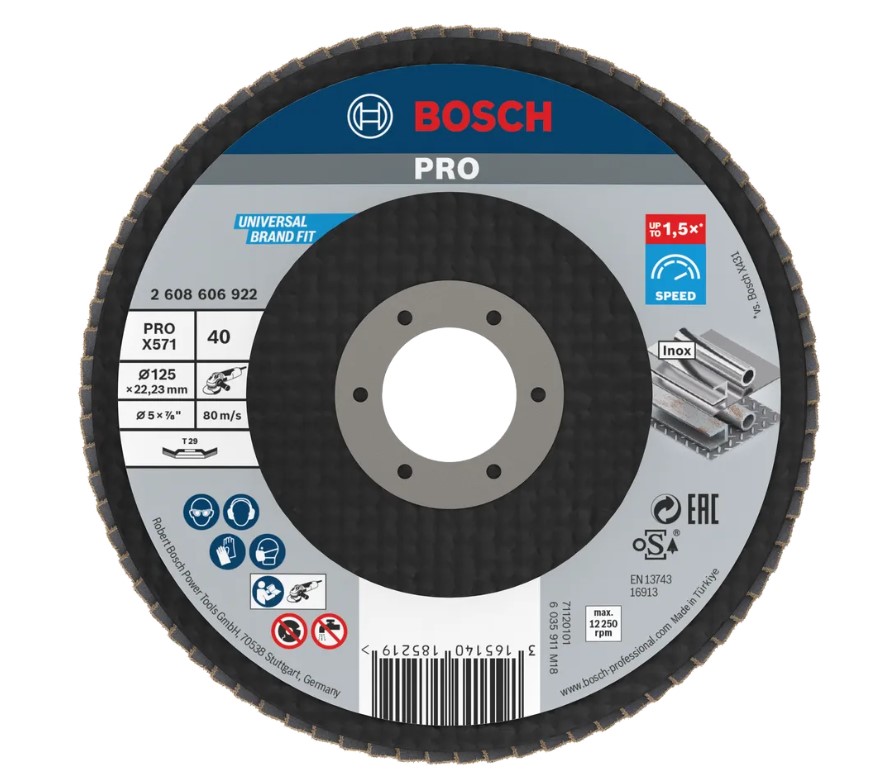Tarcza listkowa PRO X571 ma podłoże z płótna typu X zapewniającego stabilne szlifowanie. Zaawansowane połączenie ziaren tlenku glinu i cyrkonu pozwala szybko usuwać naddatki i sprawia, że ta ściernica listkowa sprawuje się wydajnie nawet na hartowanej stali.