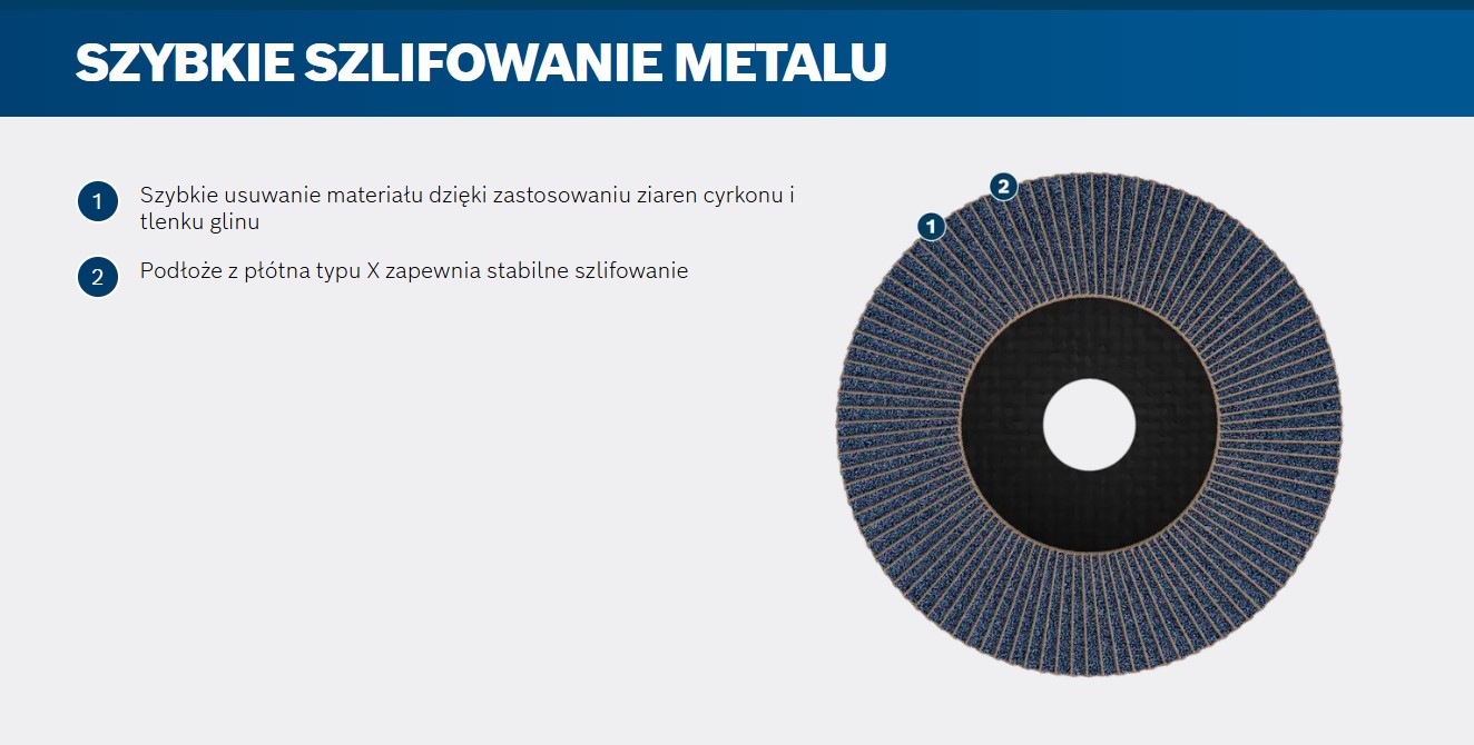- Szybkie usuwanie materiału dzięki zastosowaniu ziaren cyrkonu i tlenku glinu