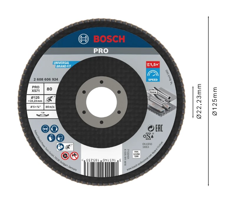 Tarcza listkowa PRO X571 ma podłoże z płótna typu X zapewniającego stabilne szlifowanie. Zaawansowane połączenie ziaren tlenku glinu i cyrkonu pozwala szybko usuwać naddatki i sprawia, że ta ściernica listkowa sprawuje się wydajnie nawet na hartowanej stali.