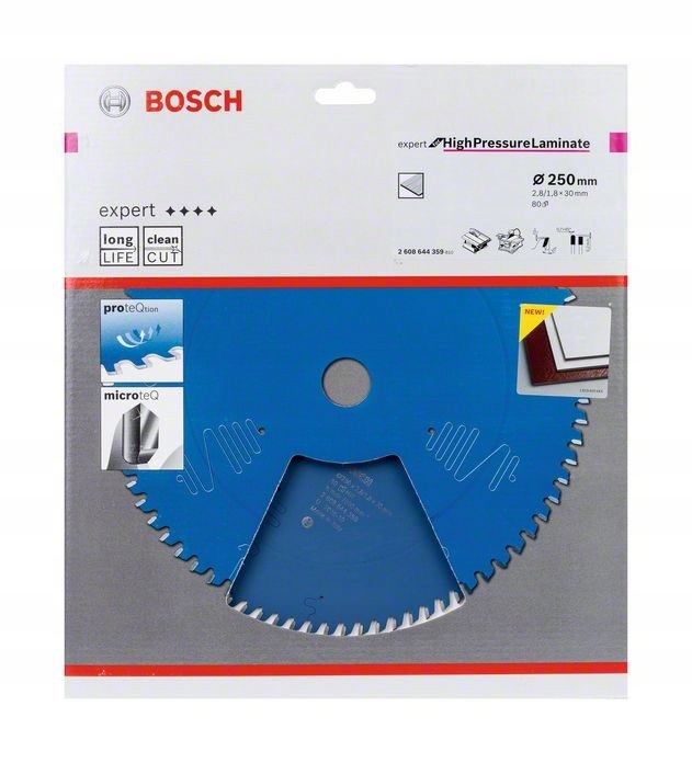 - Zęby Extra Hard MicroteQ tarczy pilarskiej wytwarzane przez Bosch z bardzo trwałych ziaren węglikowych do ekstremalnych warunków