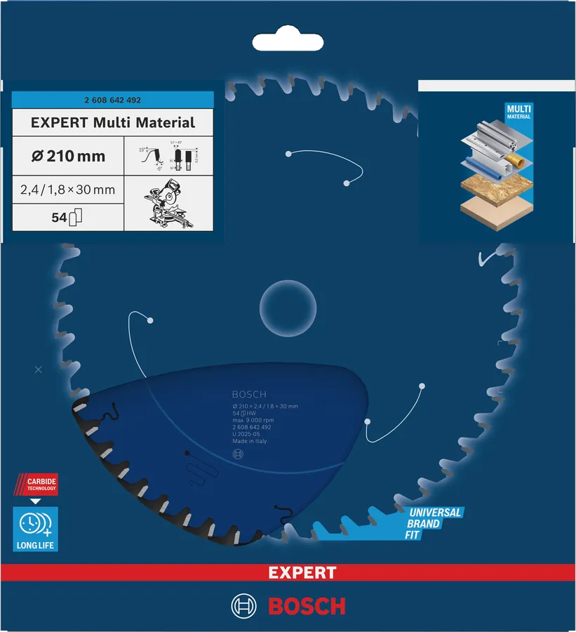 BOSCH TARCZA PIŁA EXPERT MULTI MATERIAL 210 x 30mm 54z Aluminium Płyty