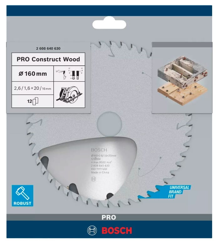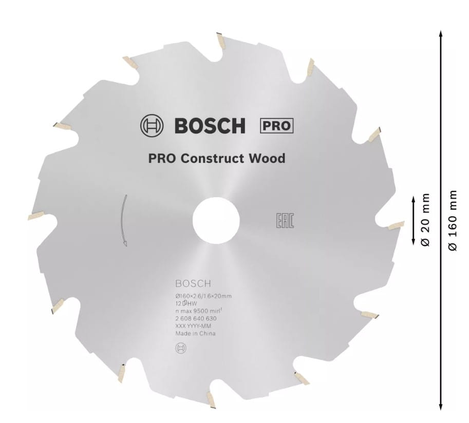 BOSCH TARCZA PIŁA PRO CONSTRUCT WOOD 160 x 20/16mm 12z drewno z gwoździami