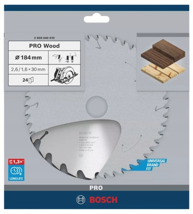 BOSCH TARCZA PIŁA PRO Wood 184 x 30mm 24z długotrwałe cięcie drewna