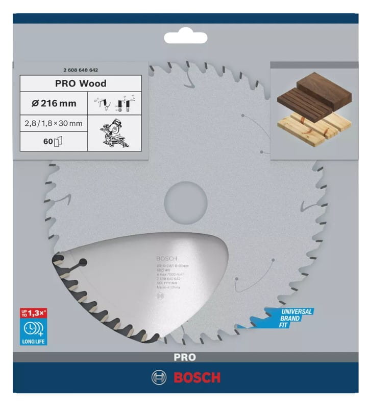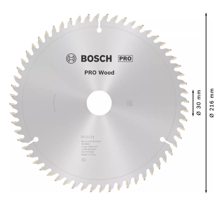 BOSCH TARCZA PIŁA PRO Wood 216x30mm 60z długotrwałe cięcie drewna