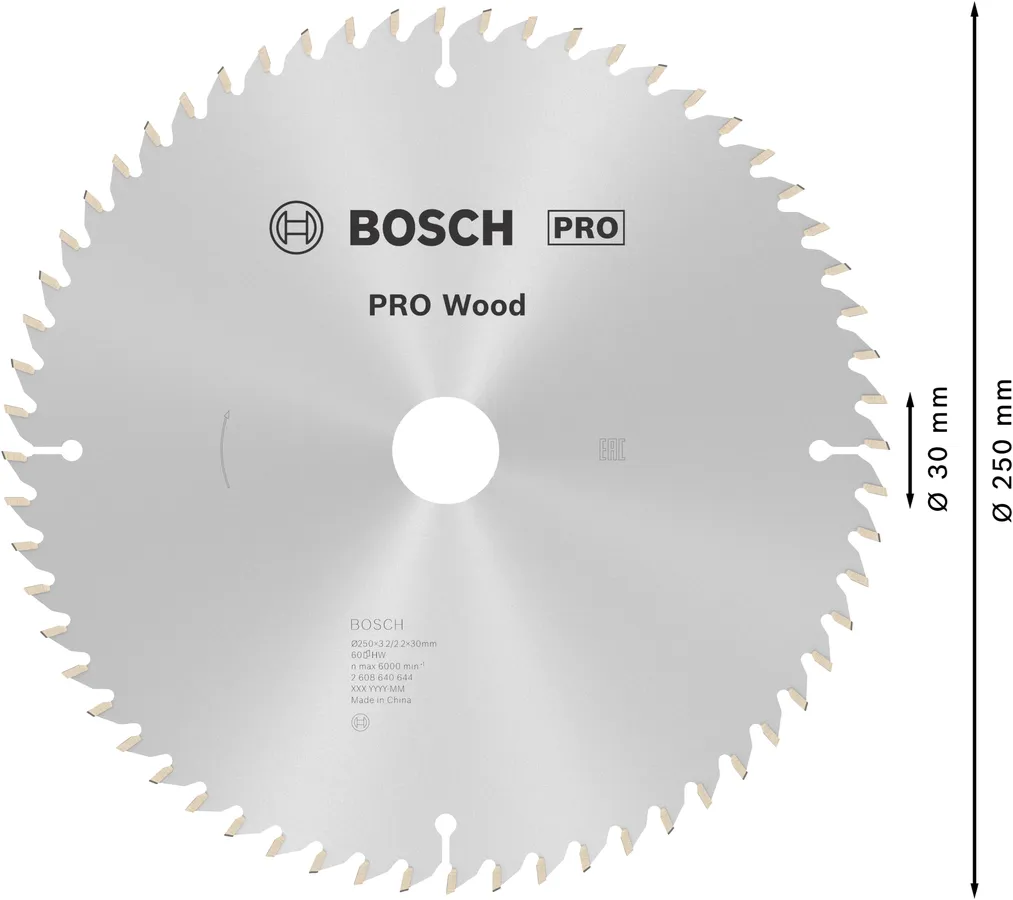 BOSCH TARCZA PIŁA PRO Wood 250 x 30mm 60z długotrwałe cięcie drewna