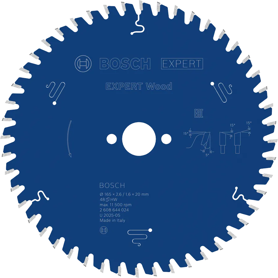 - Tarcza pilarska Expert for Wood z zębami o geometrii ATB: duża liczba zębów do czystego cięcia, niska do mocnego
