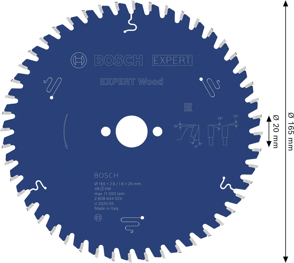 BOSCH PIŁA TARCZOWA expert for Wood 165x2,6x20mm 48z