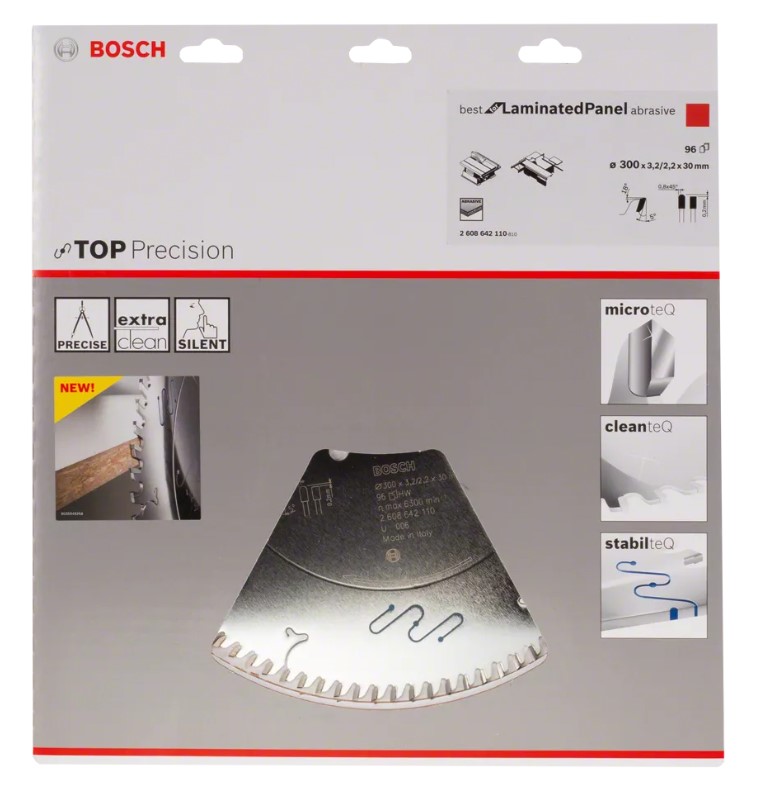 - Powłoka Cleanteq zmniejsza przywieranie pozostałości i zapewnia wyjątkowo czyste cięcie bez korozji i nagrzewania tarczy