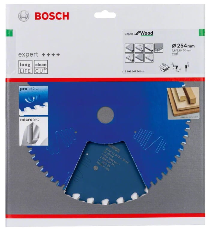 - Tarcza pilarska Expert for Wood z zębami o geometrii ATB: duża liczba zębów do czystego cięcia, niska do mocnego