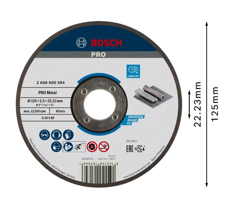 Tarcze tnące marki Bosch spełniają najwyższe standardy bezpieczeństwa, takie jak normy EN 12413, FEPA i oSa.