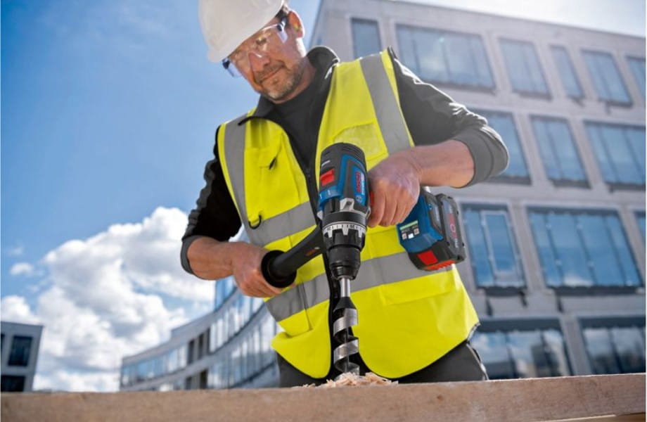 Model GSR 18V-150 C Professional prezentuje optymalny wynik pracy podczas wkręcania i wiercenia w drewnie oraz w metalu, szczególnie podczas wiercenia dużych otworów, do 102 mm, np. przy użyciu otwornic.