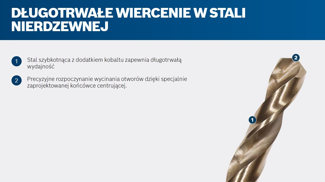 Wiertło kręte HSS Cobalt cechuje się długim czasem eksploatacji podczas wiercenia stali nierdzewnej