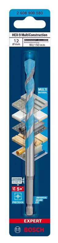 Wiertło Bosch EXPERT HEX-9 Multi Construction to jedyne wiertło, które zawsze powinno znajdować się w Twojej skrzynce narzędziowej: nigdy nie utkniesz w pracy ani nie będziesz tracić czasu na szukanie odpowiedniego wiertła.