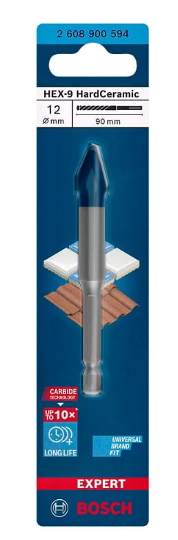 Wiertło Bosch EXPERT HEX-9 Hard Ceramic jest przeznaczone do wiercenia w ceramice i może wiercić otwory w twardych płytkach bez nawilżania i chłodzenia.