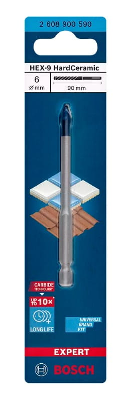 Wiertło Bosch EXPERT HEX-9 Hard Ceramic jest przeznaczone do wiercenia w ceramice i może wiercić otwory w twardych płytkach bez nawilżania i chłodzenia.