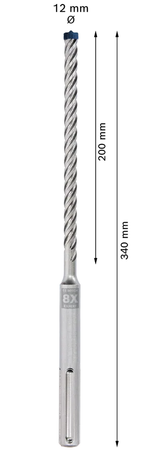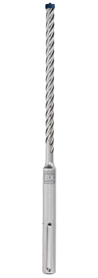 Wiertło udarowe Bosch EXPERT SDS max-8X umożliwia specjalistom z branży budowlanej regularne wiercenie w betonie i betonie zbrojonym, np. w przypadku kotew o dużej wytrzymałości lub przedłużeń prętów zbrojeniowych, zapewniając niezrównaną wydajność, niezawodność i trwałość. To jest osprzęt EXPERT do młotów udarowo-obrotowych SDS max.