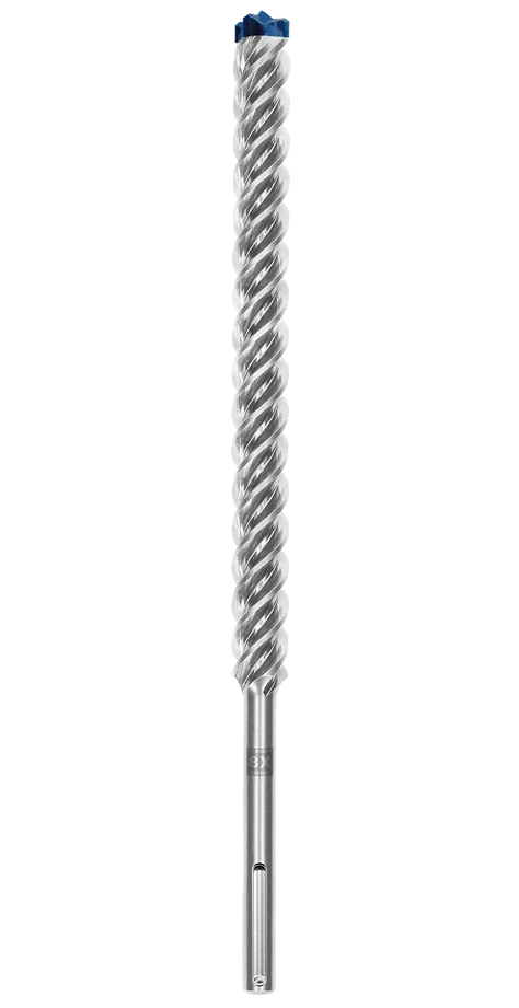 Wiertło udarowe Bosch EXPERT SDS max-8X umożliwia specjalistom z branży budowlanej regularne wiercenie w betonie i betonie zbrojonym, np. w przypadku kotew o dużej wytrzymałości lub przedłużeń prętów zbrojeniowych, zapewniając niezrównaną wydajność, niezawodność i trwałość. To jest osprzęt EXPERT do młotów udarowo-obrotowych SDS max.