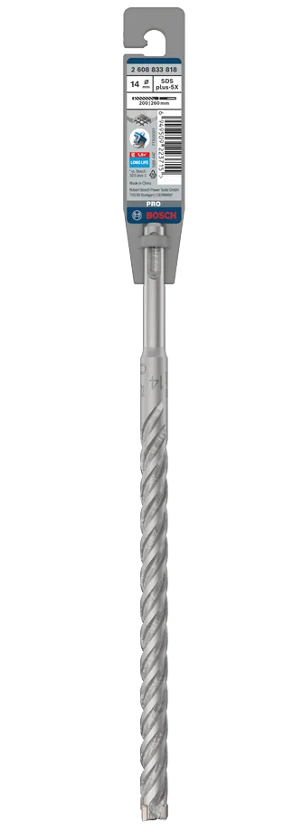Wiertło SDS plus-5X umożliwia bardzo wydajne wiercenie w żelbetonie. Forma geometryczna głowicy 4-ostrzowej zapobiega jej zakleszczeniu i pęknięciu, umożliwiając optymalną pracę. Głowica o zmiennym kącie wraz z dużymi i krótkimi rowkami usuwającymi pył w konstrukcji czterozwojnej umożliwiają szybkie usuwanie pyłu, aby wiertło mogło szybko i przy zmniejszonym zużyciu wiercić w betonie i zbrojeniach. Do wydajnej pracy i uzyskania otworu o dokładnej średnicy końcówka centrująca naprowadza wiertło od samego początku, zapobiegając jego przesuwaniu. To wiertło jest zalecane do wiercenia w murze, betonie i żelbetonie. Wiertło pasuje do wszystkich młotów obrotowych z uchwytami SDS plus.